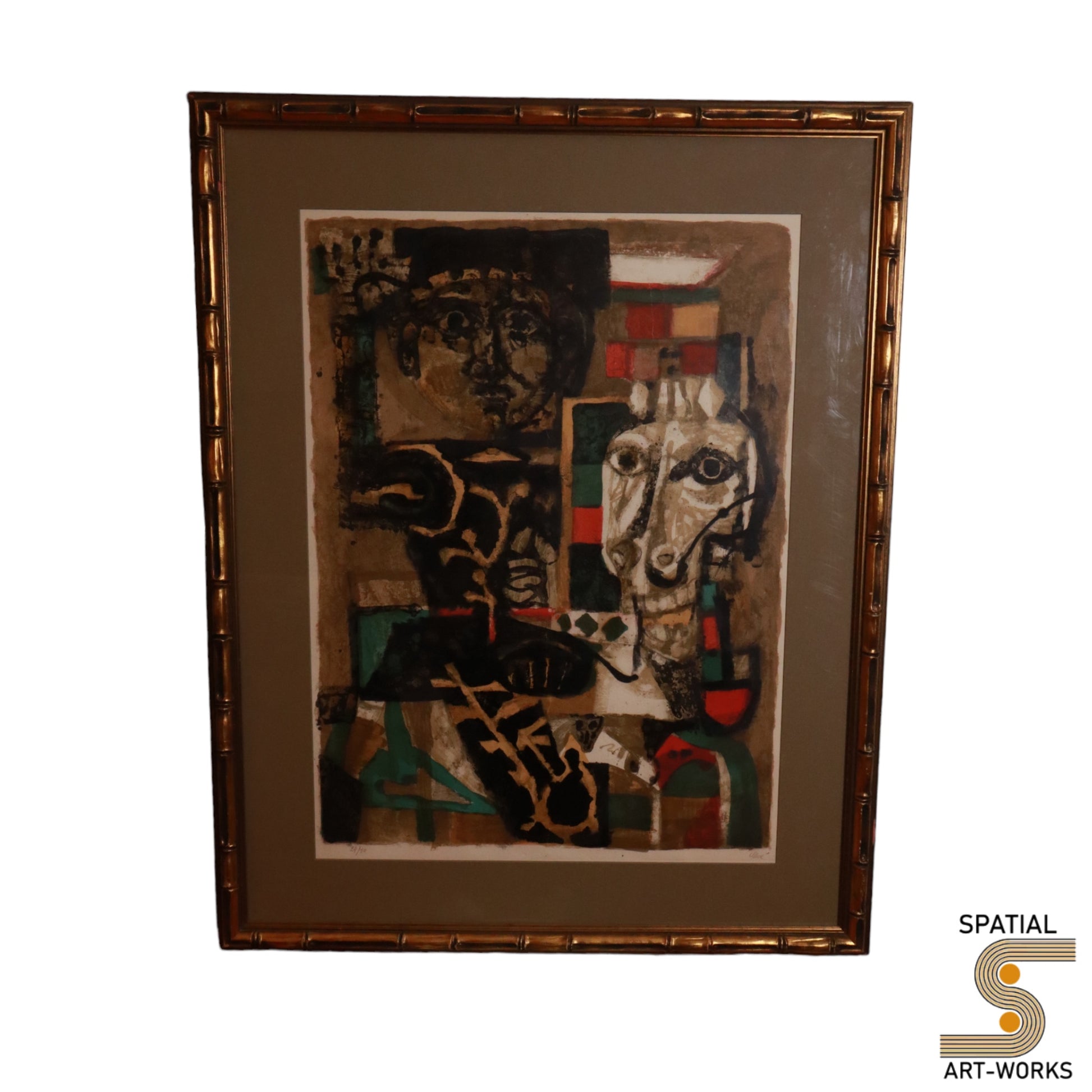 Created during the 1950s, a pivotal decade in Clavé’s career, Gargantua reflects the artist’s transition from figuration to a highly personal form of lyrical abstraction. The work demonstrates his dynamic interplay of texture, color, and collage-like structures, evoking both the vitality of post-war European modernism and his interest in reinventing traditional iconography.